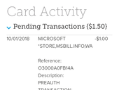 Reference 03000A0FB14A 10/01/2018 microsoftstore ,msbill info.wa preauth transaction I didint do this no one else went near or had my card i bought 1 month gold yesterday a dollar pack on google play store game and today renewed my ea access I did not click on or authorize what ever that is...