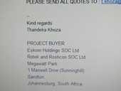 I received a RFQ from a Thandeka Khoza and I think it is a scam because the email address she used is @eskomsa.com and I know that's not eskoms's domain...