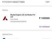 I have invested 5,25,000/- in Mydial Digital LED Ad Media Pvt Ltd in December 2017 but didn't get any return on my investment. They are not giving any feedback or reply on this issue. This is Nagpur based company and details are given below:-