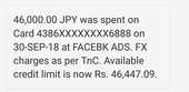 On 30 sep 46000 jyp deducted frome my citi bank credit card without my permission,through facebk ads,so pls help me ,it is a fraud transection...