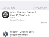 I recently bought 10,000 credits from imvu. I have a screenshot of my purchase history , this purchase was made on August 22 and it is September 2. I am very upset with this and would like to report it. I would like my credits or my money back....