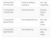 Hi, I have yet to receive my parcel. It has been posted out on 27/08/2018. The track and trace system shows that it is still in Poslaju Parcel Hub. Please help as it is urgent.