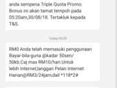 Selamat tengah Hari. Saya ingin menyatakan rasa kecewa dengan perkhidmatan celcom Hari ini. Say afa melanggan pelan internet rm30 untuk 5gb dan kuota telah habis di guna kan semalam. Pagi tadi saya melanggan semula pelan rm10 2gb untuk seminggu. Saya da terima reply message dari celcom yg mengatakan...
