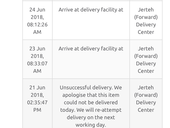 Parcel dari 21hb dh ada kt Jerteh. Tp sampai skrg masih blm sampai. Parcel dari Cheras sampai ke Jerteh dlm masa 2 hari tp dari Jerteh ke rumah dh 4 hari masih blm sampai. Perbaiki servis di cawangan Jerteh