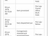 the latest update is "Consignment dispatch out from Transit Office" on 8 June 2018. However, there is no update as at today, 9June 2018.