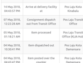 | Barang yang saya pos pada 12/5 tidak sampai lagi di destinasinye. Bila periksa no traking eh218106529my masih di transit office. Kenapa ye? Hari ini sudah 16/5.tolong cepat ye. Tq... |  |  |