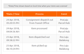 BARANG SAYA DI POS HARI ISNIN 23/4/2018 (TRACKING NO : ER231721856MY) DI POSLAJU BALAKONG. 24/4/18 DI PARCEL HUB XTAU PARCEL HUB MANA, TP SAMPAI SEKARANG DAH 26/4/18 X DAPAT !! TOLONG SEGERAKAN PENGHANTARAN POSLAJU SAYA NAK GUNA BARANG TU URGENT BY TOMORROW!! PLEASE UPGRADE SERVICE. SEPATUTNYA...