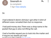 I had ordered 4 denim shirt,but i got other 4 shirt of different sizes.i emailed them but no response.