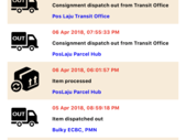 Saya Ada order barang Dari luar negara dan barang itu lambat sampai dan ini tracking number 52025744444.saya Tanya tadi di poslaju Kota Kinabalu Mereka kata kapal delay.sekarang barang itu consignment dispatch out from transit office pada 7april 2018.sampai sekarang barang Itu saya belum terima.sekian...