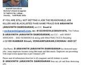 Beware of this fraud fellow D ARAVINTH (ARAVINTH DAMODARAN), B.E ECE Email id : [email protected], MB : 8122304254,6380291876 - Don't believe his false information about many companys and employers. Spread his info and Isolate him from any JOB.