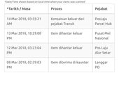 Mohon diuruskan penghantaran barang saya yang lama di parcel hub dari 14/3/2018. Sehingga sekarang