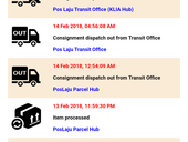 Both parcel send to johor but the status update stopped at Consignment dispatch out from KLIA hub.