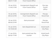 Pos laju..please update my parcel status...till now 23 jan 2018 not receive that item