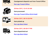1st time call poslaju Last Update time 8/12/2017 in Transit Ofiice
