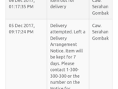 I track parcel saya, "item delivered to shahir" tapi siapa shahir. Saya dah tanya jiran and they said dontbkbow. Adik saya terdengar posmen tanya semua oranf, and dia cakap dia salah hantar barang! Then me? Please do something to settle this matter, dah lah servis lambat!!...