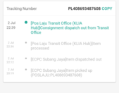 PL408693487608... Please check my parcel. Dah lama tggu nie...