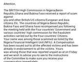 I am being harrassed daily with emails from the Benin Republic wanting money sent through Western Union/,Moneygram. Some are posing as FBI agents,IRS agents,Inheritance Attorneys,UNITED STATES SOLDIERS saying they are hospitalized due to car bombs,and distant relatives ive never heard of....