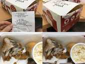 From the photo attached. Can see the packaging (box) is very lousy and worst. Some more, the chicken is not fresh (it's like overnight 2-3 days). Some weird combination smell and the coleslaw doesn't taste good. SOP is very important to keep serving fresh foods for consumer. Thank...