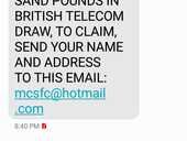 I received a masg from cell no +923367054224 (you have been rewarded with the sum of eight hundred thousand pound in British Telecom draw to claim send your name and age to this email [email protected])......