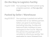 3/8 the seller sent out the goods, and 5/8 arrived at the parcel hub , until today10/8 status is still the same as the original. What happened to my handitizer? where is my goods ?...