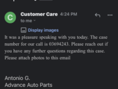A employee at advance auto put the wrong radiator cap on my car on April 8th 2023 and my radiator busted and my engine locked up and my never worked again. I contacted the corporate office and they told me to send them the invoice from my mechanic and as of today my car is still disabled....