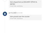 Jul 14, 2020 05:20 PM - Item dispatched out DELIVERY OFFICE KL METRO (PUSAT MEL NASIONAL)