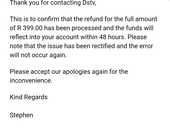 I am no longer a DSTV customer, I cancelled my subscription over 2 years ago. I was shocked to discover that on the 04/07/2020 DSTV illegal deducted the amount of R399.00 from my account.