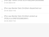 25 Apr 2020, 12:22:06 AM Consignment dispatch out from Transit Office PosLaju Parcel Hub