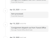 Since 23/4/2020 tiada update drp poslaju. Kalau boleh mohon pihak poslaju percepatkan untuk penghantaran barang saya. Con note no: Erb731346978my...