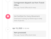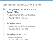 Apr 16, 202012:44 AM - Consignment dispatch out from Transit Office [Pos Laju Transit Office (KLIA Hub)]