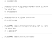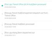 my parcel processed on 23 March 2020 at Pos Laju Transit Office (klia Hub)