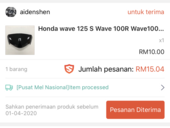 Kedua2 item masih belum diterima kerana alamat pejabat : pejabat tidak dibuka kerana PKP. Mohon ditukar alamat -