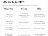 Erb488532874my Tlong hntar sgera item sy. Sgt urgent. Dari 25/3 brg sgkut kt hub...