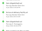 08 Jan 2020, 12:27:40 AM Consignment dispatch out from Transit Office PosLaju Parcel Hub