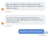 I order thali on Swiggy as per my current gps but when I login its automatically change my address as per my account. When I see gps is incorrect then I quickly click on help button. Then I cancel the order but fifty percentage charge deducted from actual amount.