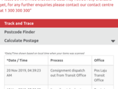 Barang saya sudah post Dari Kedai ke bangi Barang saya hantar pada 30/11/19