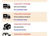 However, the item arrived Pos Laju Alor Gajah only on 11th November 2019.