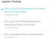 Barang dari poslaju Kuantan 18/10/2019 tak sampai2,sekarang dah 25/10/2019.Last tracking updated 19/10/2019 : (Poslaju Kuching)consignment dispacth out from Transit Office.Poslaju Management tolong improve service,Service korang bukan free,orang bayar,bukan korang buat kerja amal pun....
