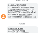 SBIDrCard X0666 used for Rs1492.62 on28Aug19 at99999999 Txn#924003385690 If not done by u fwd this SMS to 9223008333 or call1800111109 to block ur Card