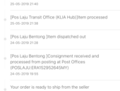 Parcel still stuck since 31/5..segerakan penghantaran..