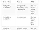 Brg masih di post laju transit klia.. Brg sapai di post office pd 20hb 5. tp masih x gerak kluar.. Mohon disegerakn...