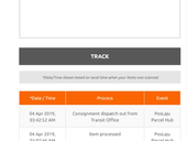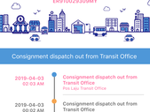 Barang dah seminggu status consigment dispatch out from transit office poslaju parcel hub pada tarikh 4.4.19 jam 03.45.52 a.m..