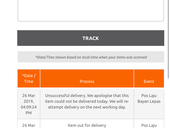 Sepanjang i guna khidmat poslaju for 7 years this is the first time i got a notification from tracking after di update ‘item for delivery’ dlm tracking ditukar ke “sorry your item can’t be deliver today,deliver next working days” after i berpindah rumah ke area Batu Uban Bayan Lepas,Penang...