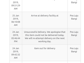 Tracking no Er74001131my 25/1/19 tidak diterima dengan alasan sy xada di rumah.. Ka posmen yg pegang brg sy 2 mls nk naik sebab rumah sy tgkat 4 qrts penjara kajang!!! sedangkan pada hari tersebut sy ada terima brg Er750385268my.. macam mna untuk brg Er74001131my pada tarikh yg sama 25/1/19...